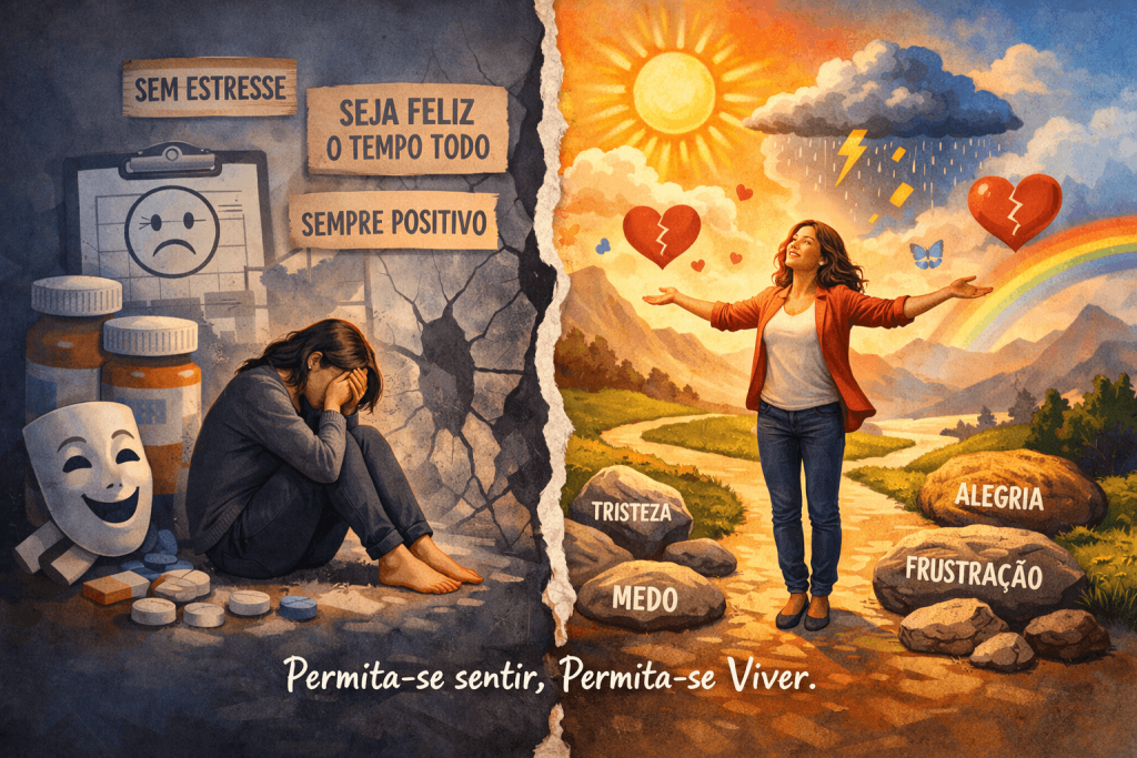 Experiências humanas naturais: como tristeza, frustração, medo, dúvida ou cansaço, passam a ser vistas rapidamente como sinais de doença ou fracasso pessoal. Em vez de serem compreendidas como parte da condição humana e do processo de amadurecimento, essas emoções são frequentemente tratadas como algo que precisa ser eliminado.