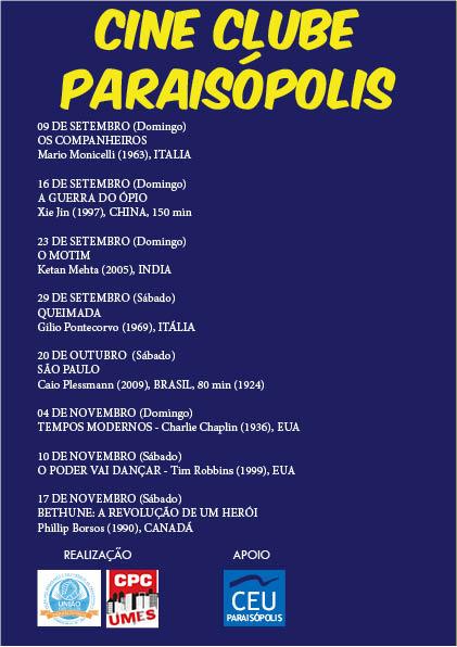 Cine Clube Paraisópolis estréia neste sábado as 16h30 no CEU Paraisópolis
