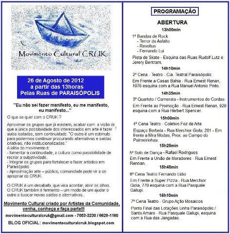 Movimento CRUK do dia 26/08 será pelas ruas de Paraisópolis