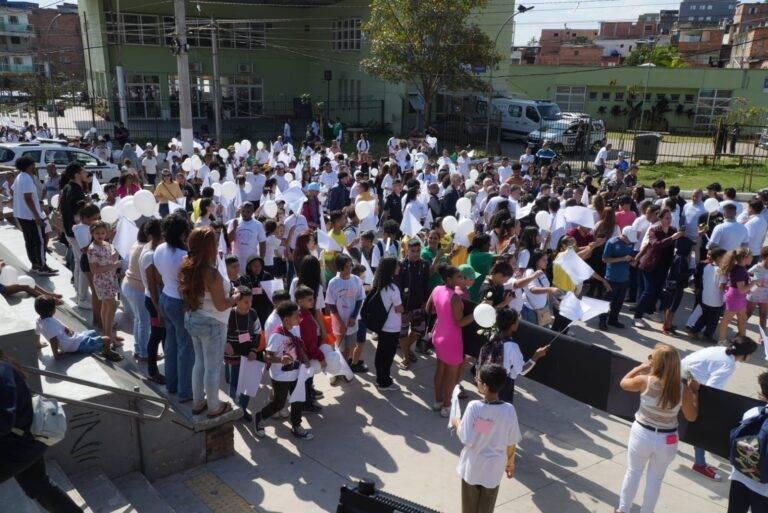 Caminhada pela paz nas escolas reúne lideranças e comunidade em Paraisópolis