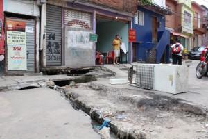 Vala no meio da rua e viela alagada são alguns dos problemas da Melchior Giola
