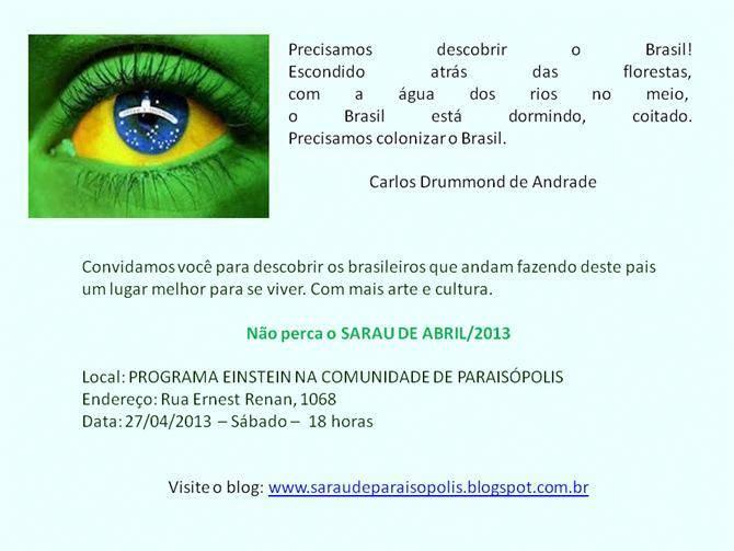 Sarau de Paraisópolis – 27 de Abril – 18h00