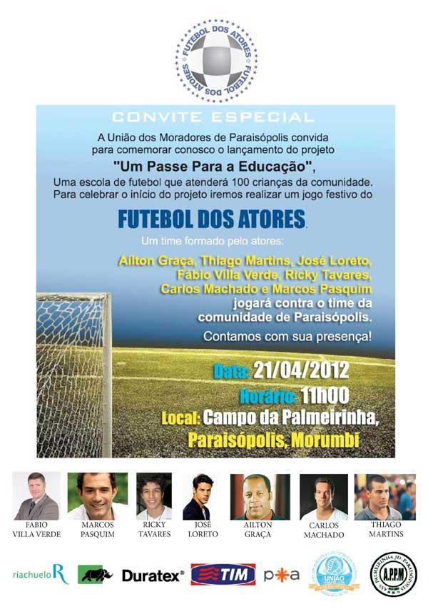 Projeto “Um Passe para Educação” será lançado em Paraisópolis com Futebol dos Atores