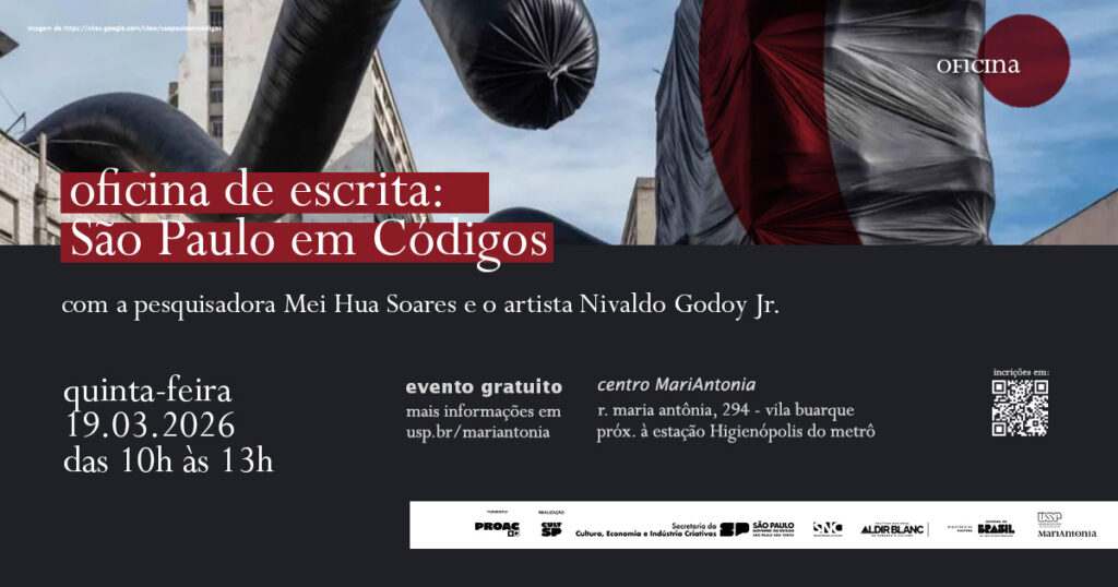 Inscrições abertas até 30 de abril para a oficina “Ler e Escrever a Cidade” na USP Leste, em Itaquera. São 40 vagas gratuitas para moradores a partir de 16 anos que querem entender São Paulo por meio de crônicas, poemas e memórias de quem vive nos bairros periféricos.