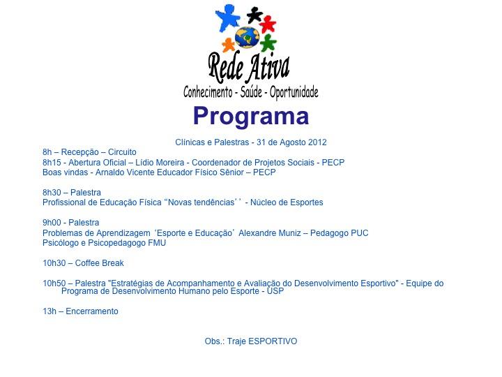 Rede Ativa 2012 ocorrerá dia 31/08 apartir das 8h00